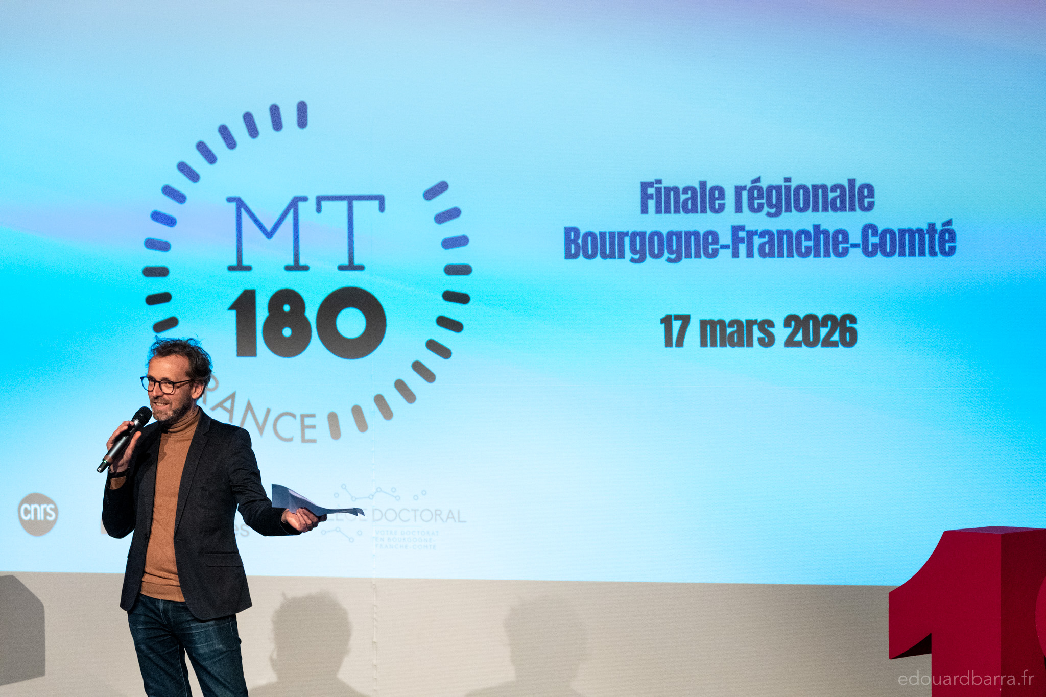 Every on of them had the opportunity to present their researchj in exactly three minutes at the Théâtre Fontaine d’Ouche in Dijon on 17 March 2026.