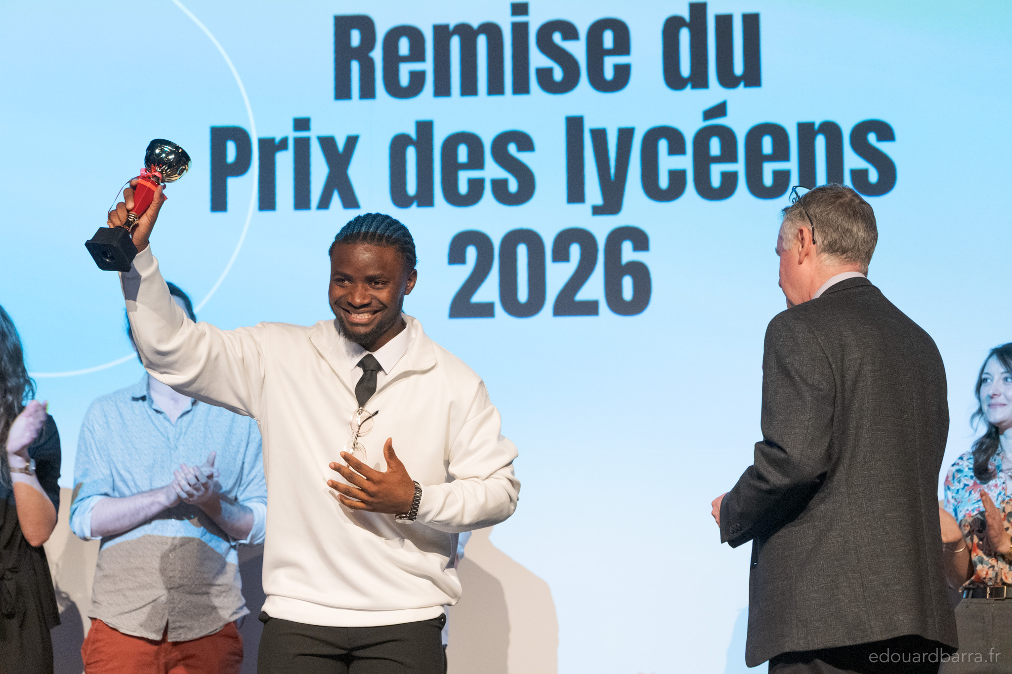 More than 230 high-schoolers came to watch their presentations that afternoon, during a session organised especially for them, after which they voted for their favourite candidate. Martial Houndekon received the most votes and won the 2026 High School Students’ Prize.